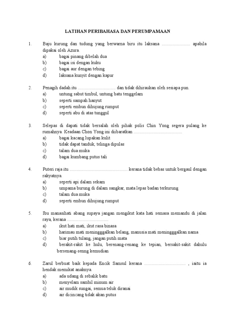 Latihan Peribahasa Dan Perumpamaan Pdf